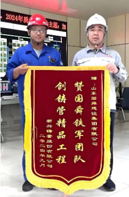 2024年9月23日,新興鑄管有限公司向山東國舜建設集團有限公司項目部贈送了一面錦旗,以表達對國舜在新興鑄管煉鐵部三燒煙氣除塵脫硝項目中杰出表現的誠摯感謝。
