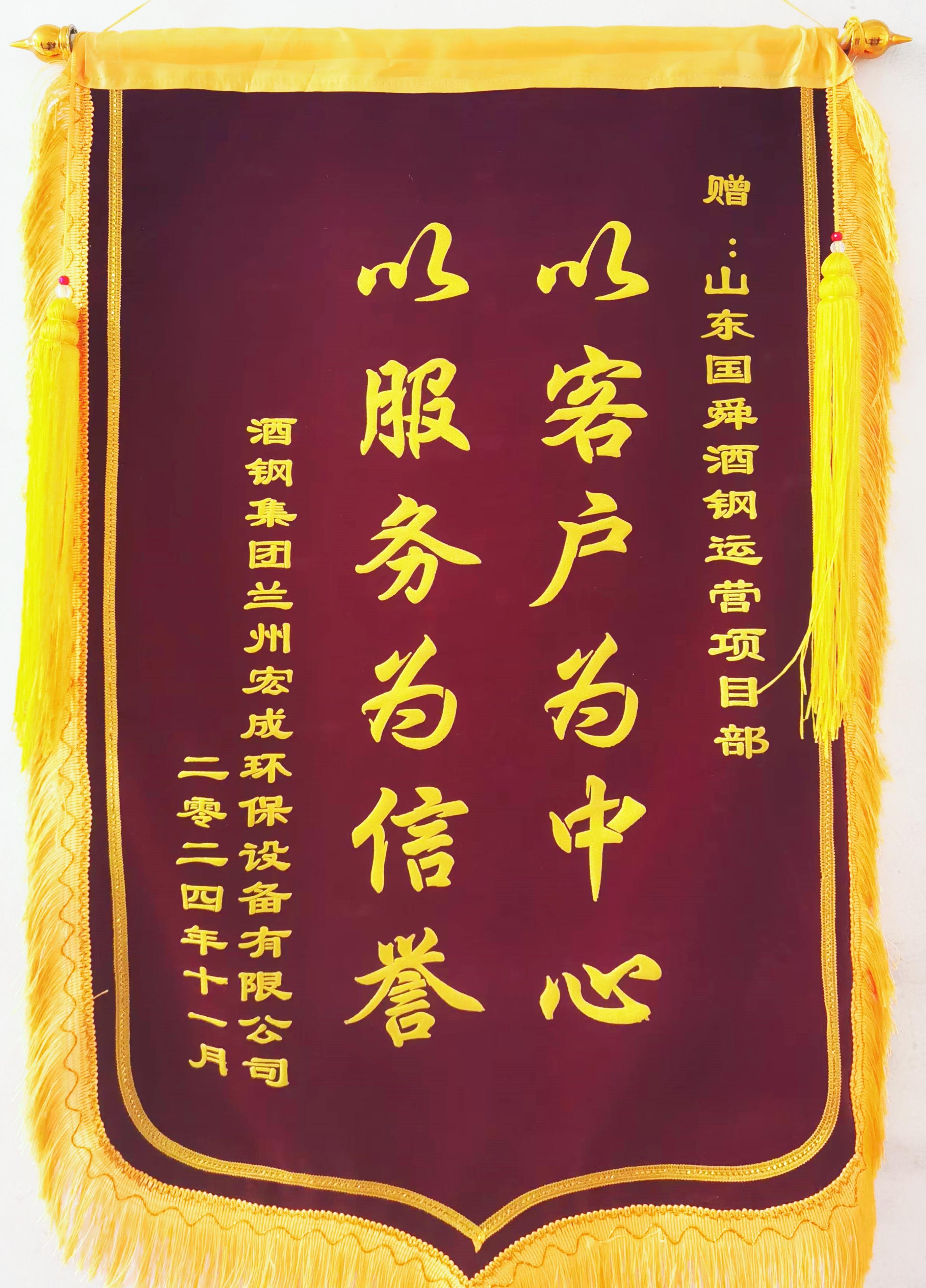 2024年11月12日,酒鋼集團蘭州宏成環保設備有限公司總經理李宏陽、脫硫脫硝項目部經理宋維明一行專程前往山東國舜駐酒鋼運營項目部,將錦旗和“先進集體”榮譽牌匾贈予國舜運營團隊,以表達對2024年度工作的認可和激勵。
