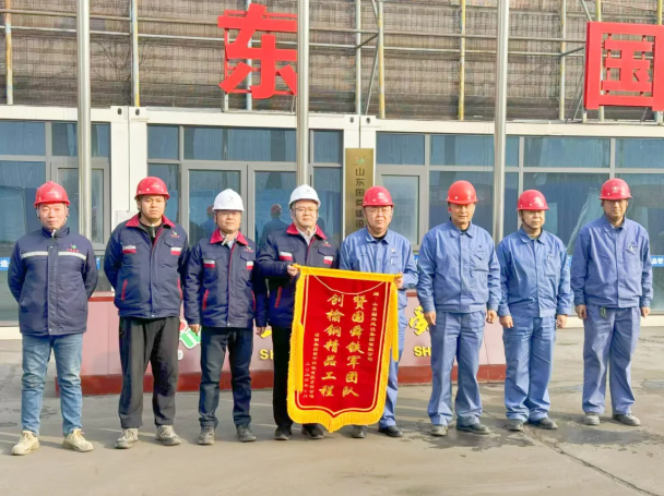 在項目推進過程中,山東國舜榆鋼項目部堅持“干”字當頭,搶抓工程進度,對安全、質量、工期管控精準有力,展現出了“國舜鐵軍”卓越的敬業精神和優秀的專業素養,為項目提前投產做出了突出貢獻。酒鋼集團榆中鋼鐵有限責任公司黨委書記、執行董事王磊,項目執行經理高云,項目副經理李長鴻頒發錦旗,以示感謝。