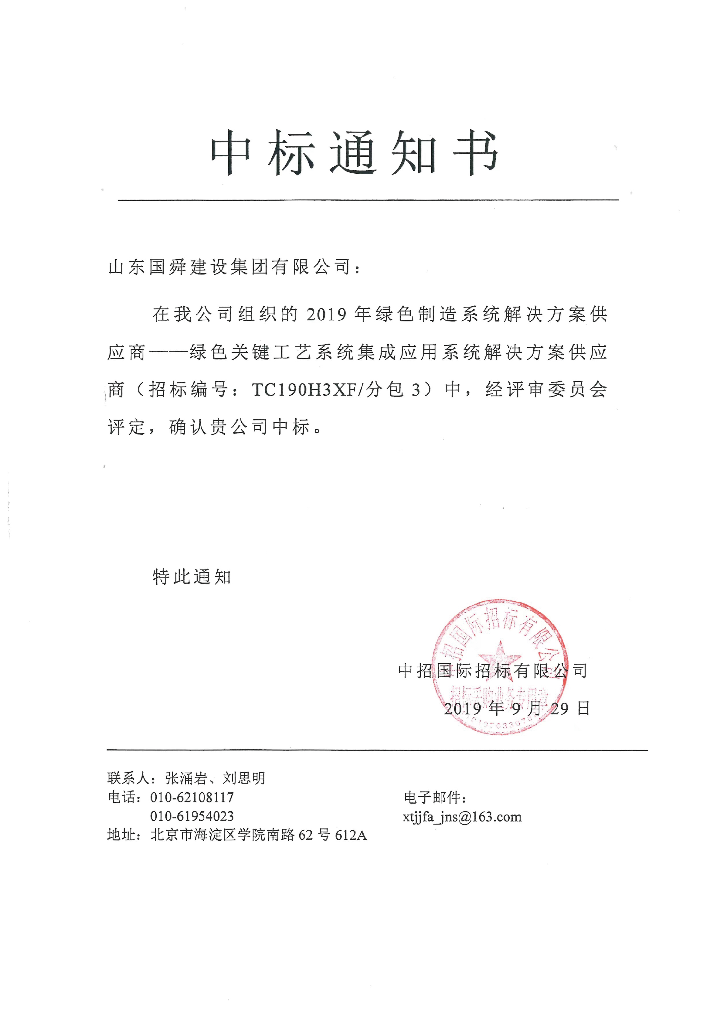 2019年9月,國舜集團中標工信部綠色制造系統解決方案供應商
