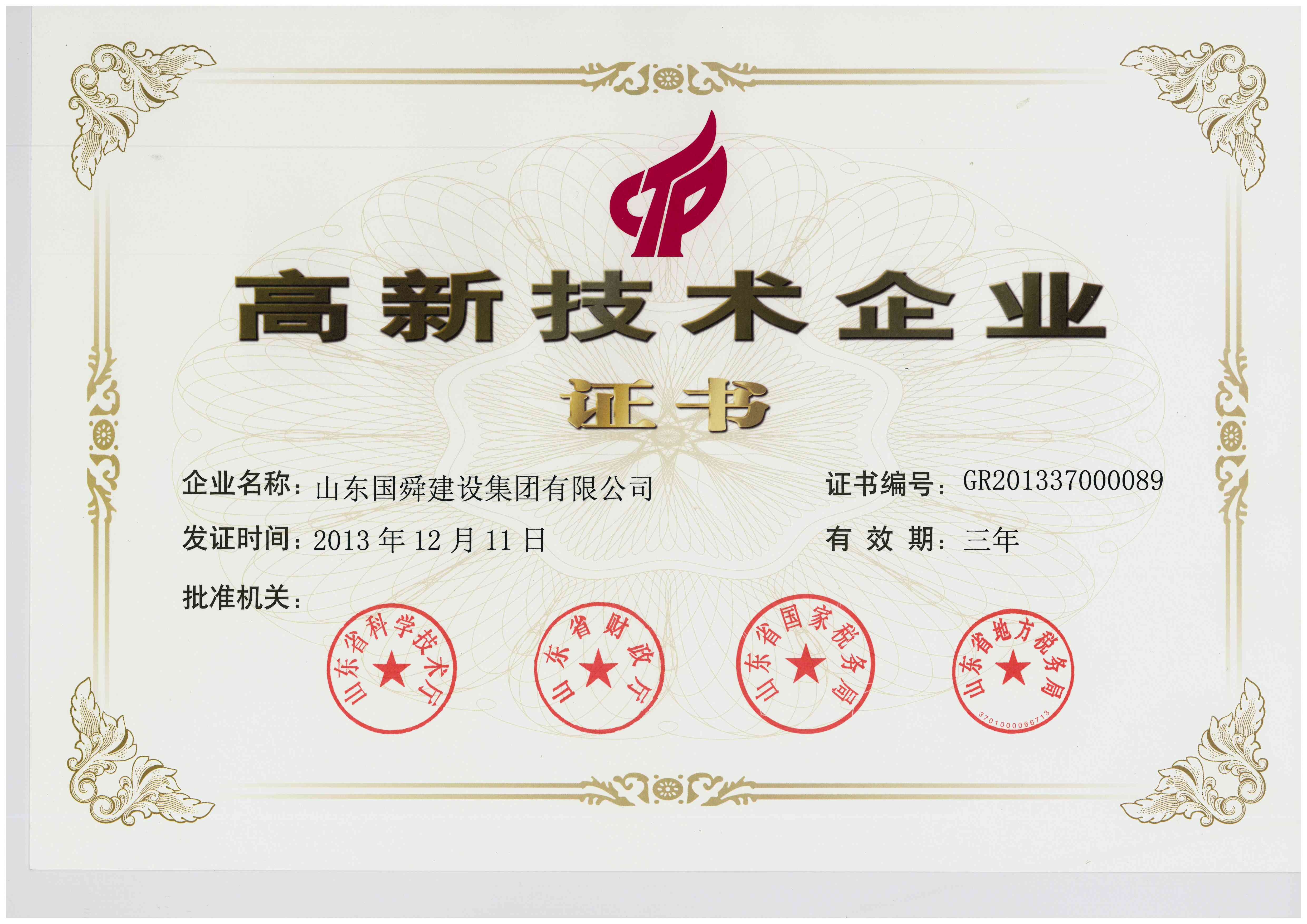 2013年12月,經國家科技部批準,國舜集團被認定為“國家高新技術企業”