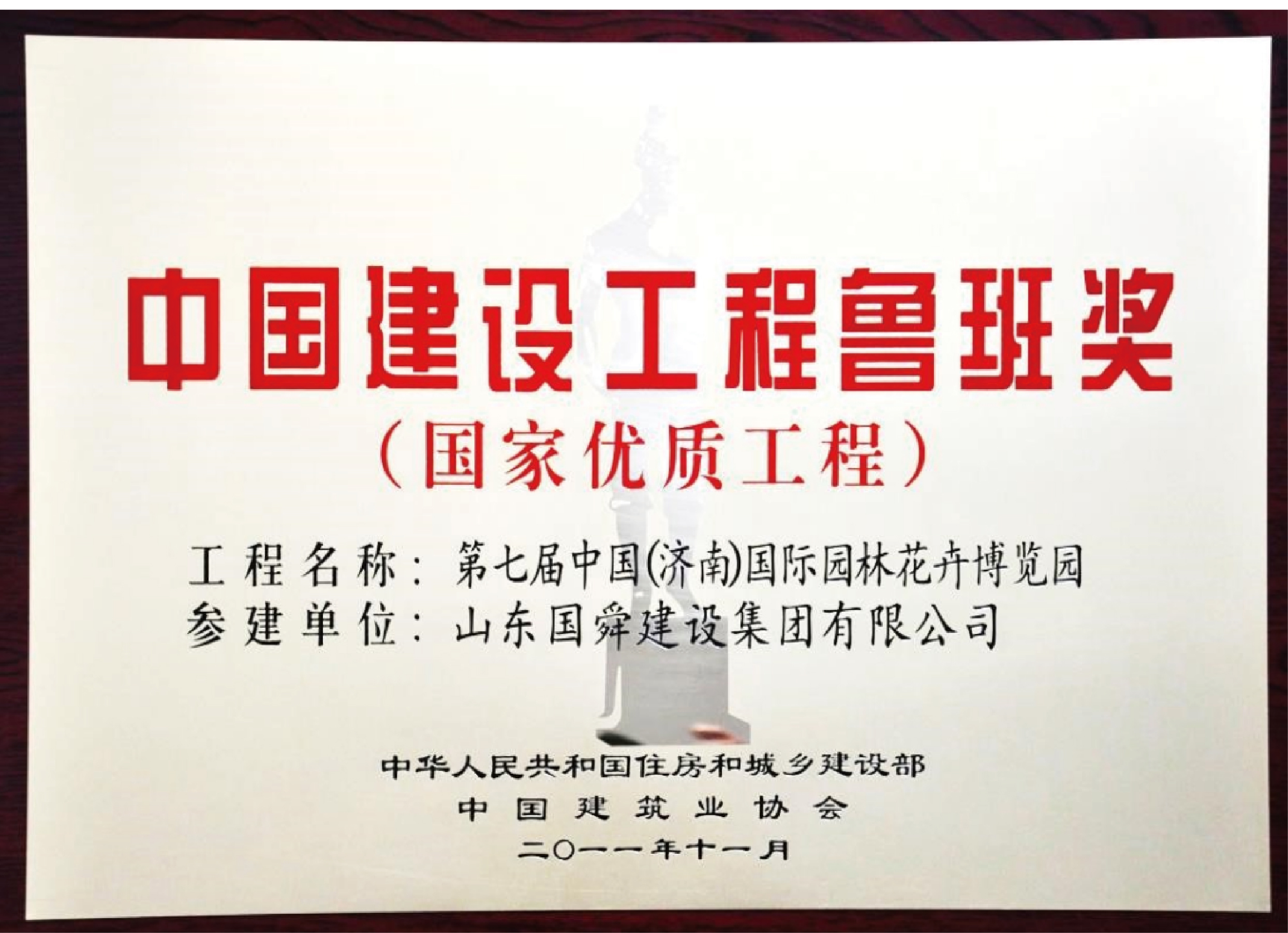 2011年11月,國舜集團承建的園博園主展館等系列工程榮獲“中國建筑工程魯班獎”