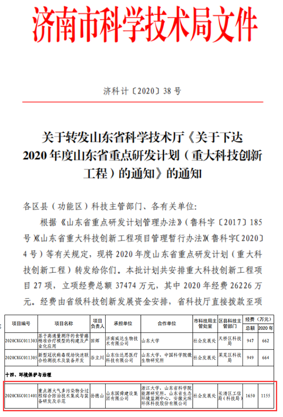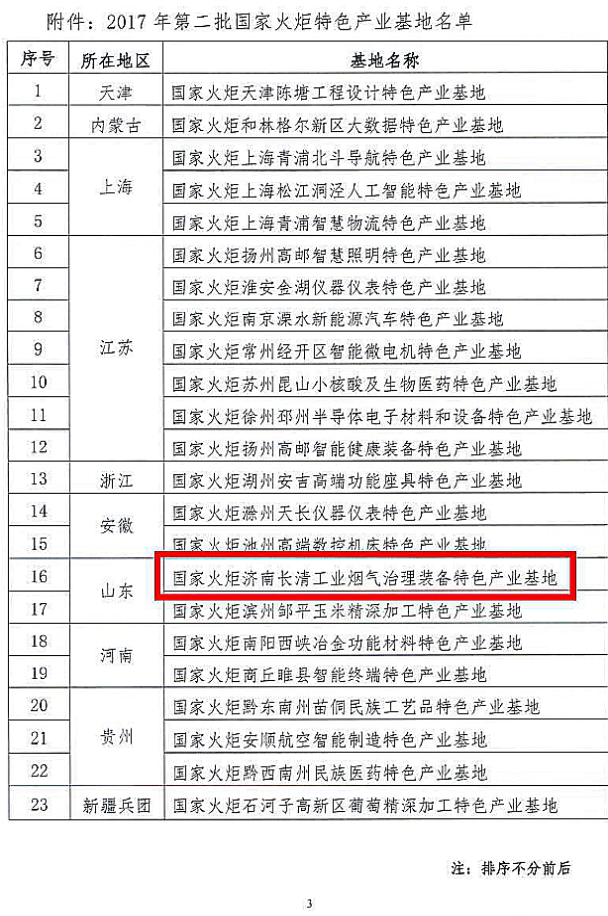 國家火炬濟南長清工業煙氣治理裝備特色產業基地(龍頭企業)