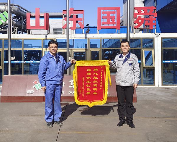 2024年10月14日,國(guó)舜集團(tuán)甘肅酒鋼燒結(jié)三化項(xiàng)目部收到了客戶送來(lái)錦旗和榮譽(yù)獎(jiǎng)牌,以感謝項(xiàng)目團(tuán)隊(duì)對(duì)該項(xiàng)目運(yùn)行投產(chǎn)做出的突出貢獻(xiàn),并對(duì)國(guó)舜集團(tuán)規(guī)范高效的項(xiàng)目管理和優(yōu)質(zhì)的工程質(zhì)量給予了充分肯定。